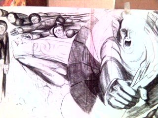 y teniendo el dummie mecánico de la esculto-pintura de David Alfaro Siqueiros,